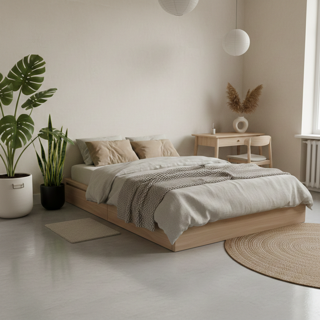 4. Kamar Tidur Bergaya Japandi (Japan-Scandi)