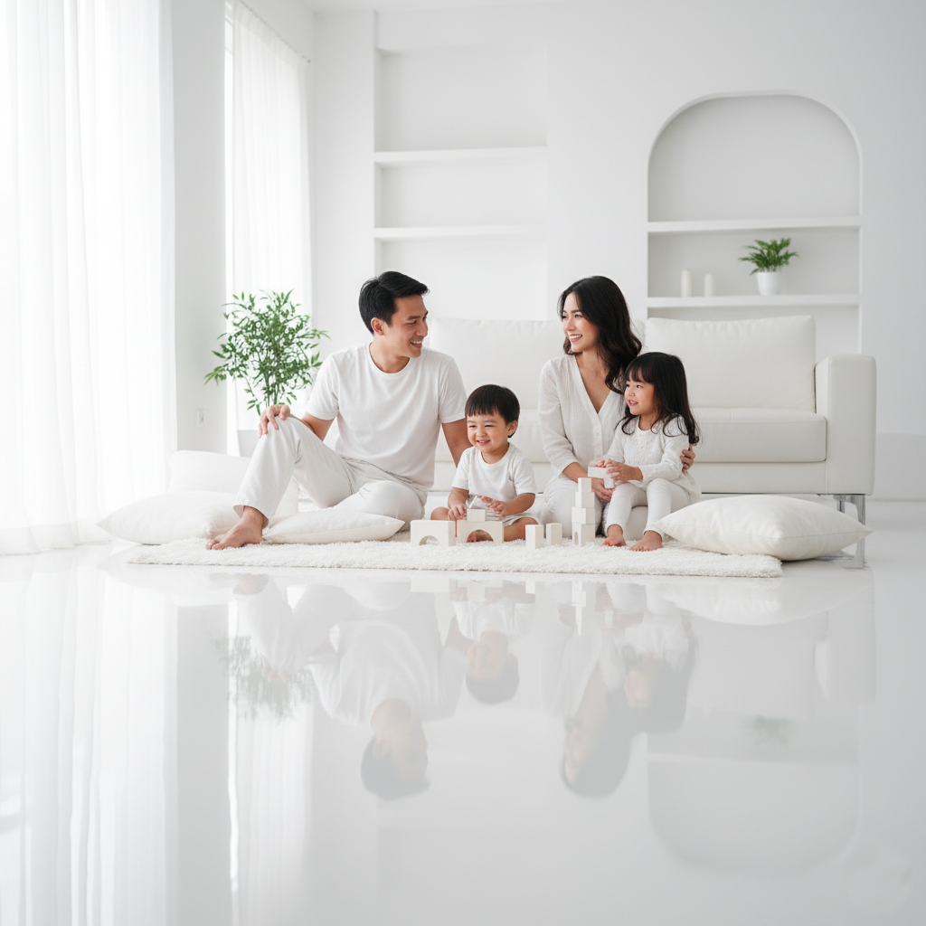 Lantai epoxy aman bagi kesehatan, asalkan pemasangannya dilakukan oleh profesional yang memahami dan menerapkan prosedur keselamatan dengan benar. Bahaya utama berasal dari uap VOCs yang dilepaskan saat resin masih basah. Namun, begitu lantai sudah mengering sempurna, ia akan menjadi permukaan yang higienis, tahan lama, dan tidak berbahaya bagi penghuni.