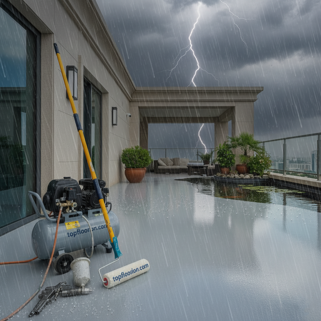- Mencegah Kerusakan Akibat Air dan Kelembaban: Air adalah musuh utama beton. Tanpa lapisan pelindung, air dapat meresap ke dalam pori-pori beton, menyebabkan retakan, pengelupasan, dan bahkan pertumbuhan jamur serta lumut. Di area terbuka seperti rooftop, genangan air hujan dapat mempercepat proses kerusakan ini. Pelapis lantai menciptakan penghalang kedap air yang efektif.