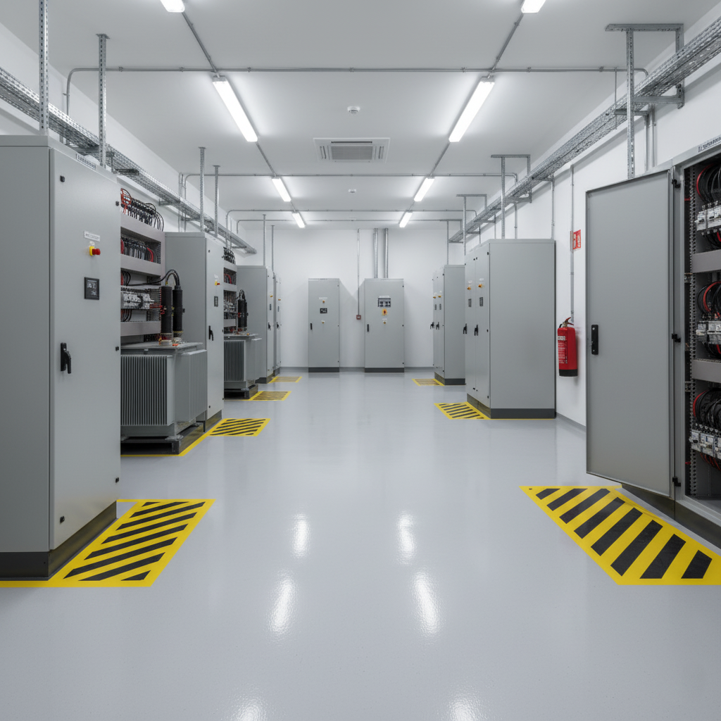 Ruangan kelistrikan harus dijaga kebersihannya dari debu dan kotoran. Permukaan epoxy yang mulus, rata, dan tanpa sambungan (seamless) menjadikannya sangat mudah dibersihkan. Debu tidak dapat bersarang di nat atau pori-pori, yang penting untuk mencegah gangguan pada peralatan sensitif.