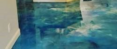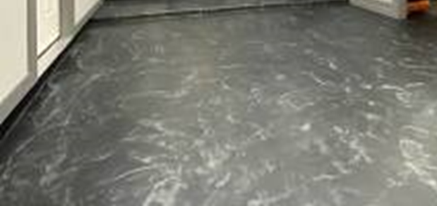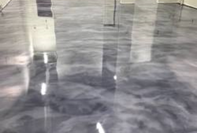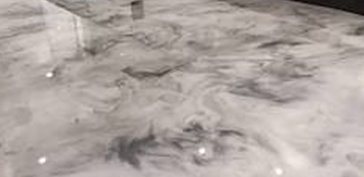 Efek marmer pada epoxy lantai memberikan tampilan yang sangat elegan dan mewah. Pola marmer yang natural dan variasi warna yang lembut membuat lantai terlihat seperti marmer asli.